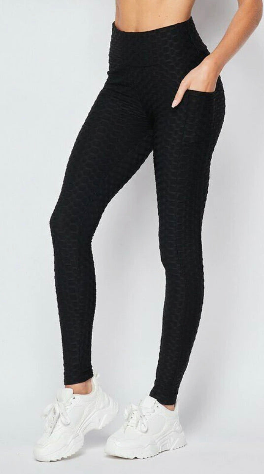 - A Gorgeous Ruched Scrunch Butt High Waisted Design with Side Pockets